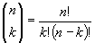 combinaciones=factorial(n)/(factorial(k)*factorial(n-k));