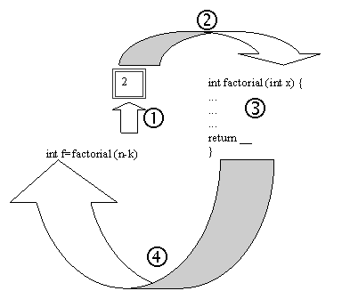 C permite definir funciones, que son subprogramas que llevan a cabo tareas específicas. A modo de ejemplo, si suponemos que existe una función de nombre factorial que recibe un número entero y devuelve su factorial, entonces el programa queda